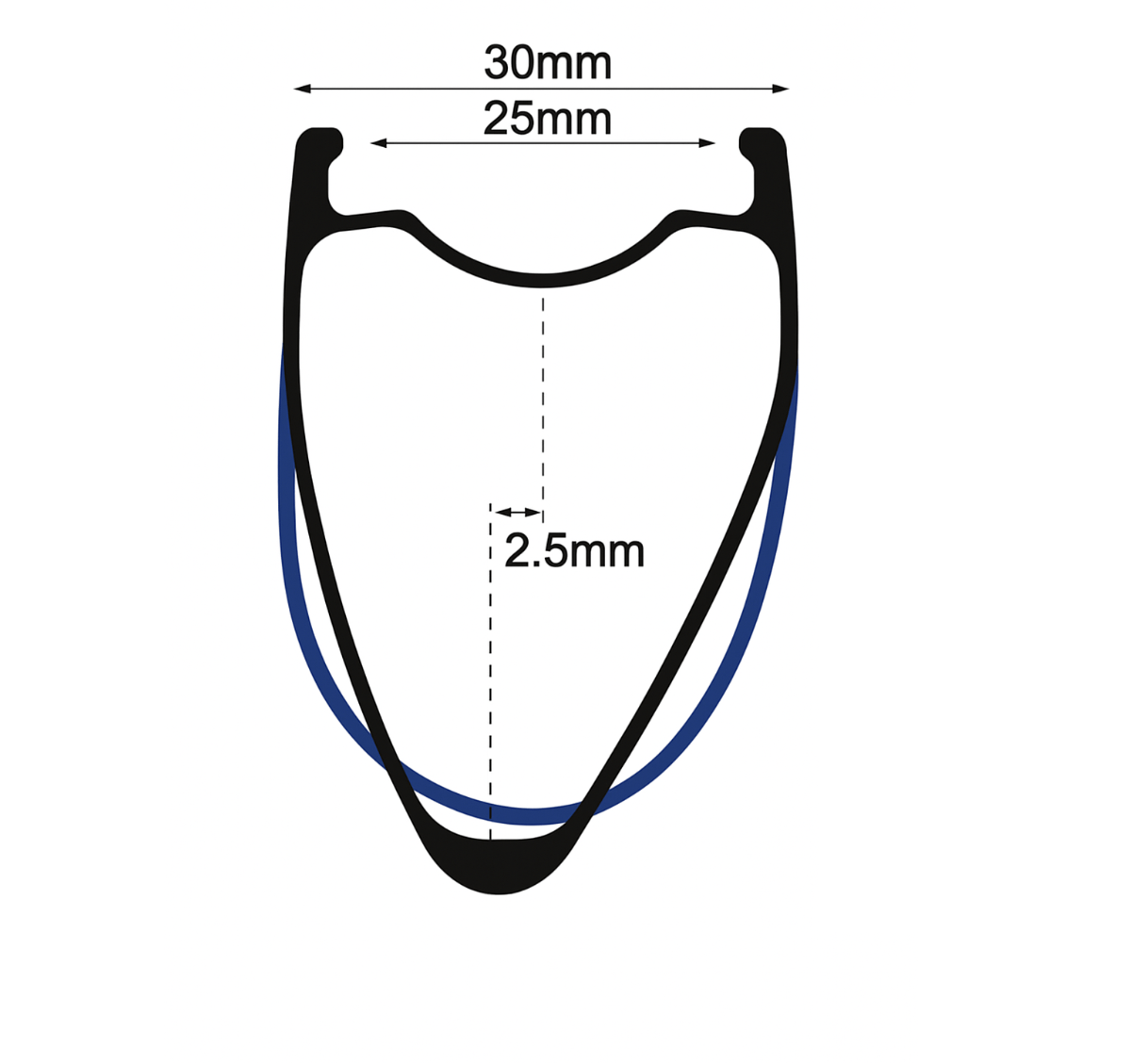 Juego de ruedas Factory 35 Top Secret Senoide (35mm perfil x 25mm int x 30mm ext). En la parte baja del senoide miden 30mm alto.